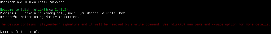 The name looks strange, but fdisk does report a filesystem signature zfs_member found at my disk, and lsblk -f /dev/sdb makes it clearer.