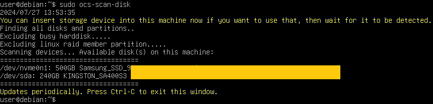 The utility calls get_not_busy_disks_or_parts, which is defined in ocs-functions. By logging all enumerated drives in the script, the problematic trace is shown below: